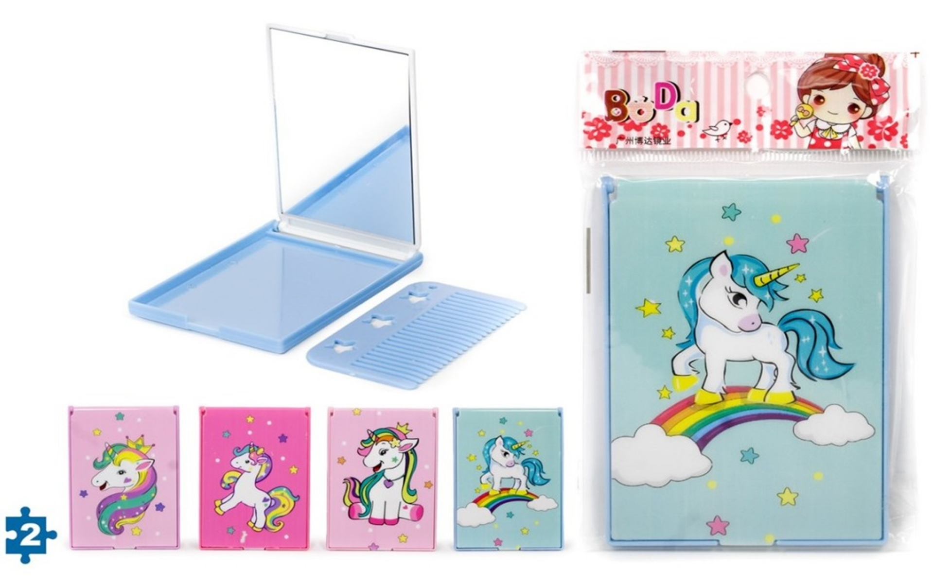 ESPEJO+PEINE RECTANGULAR UNICORNIO (12)
