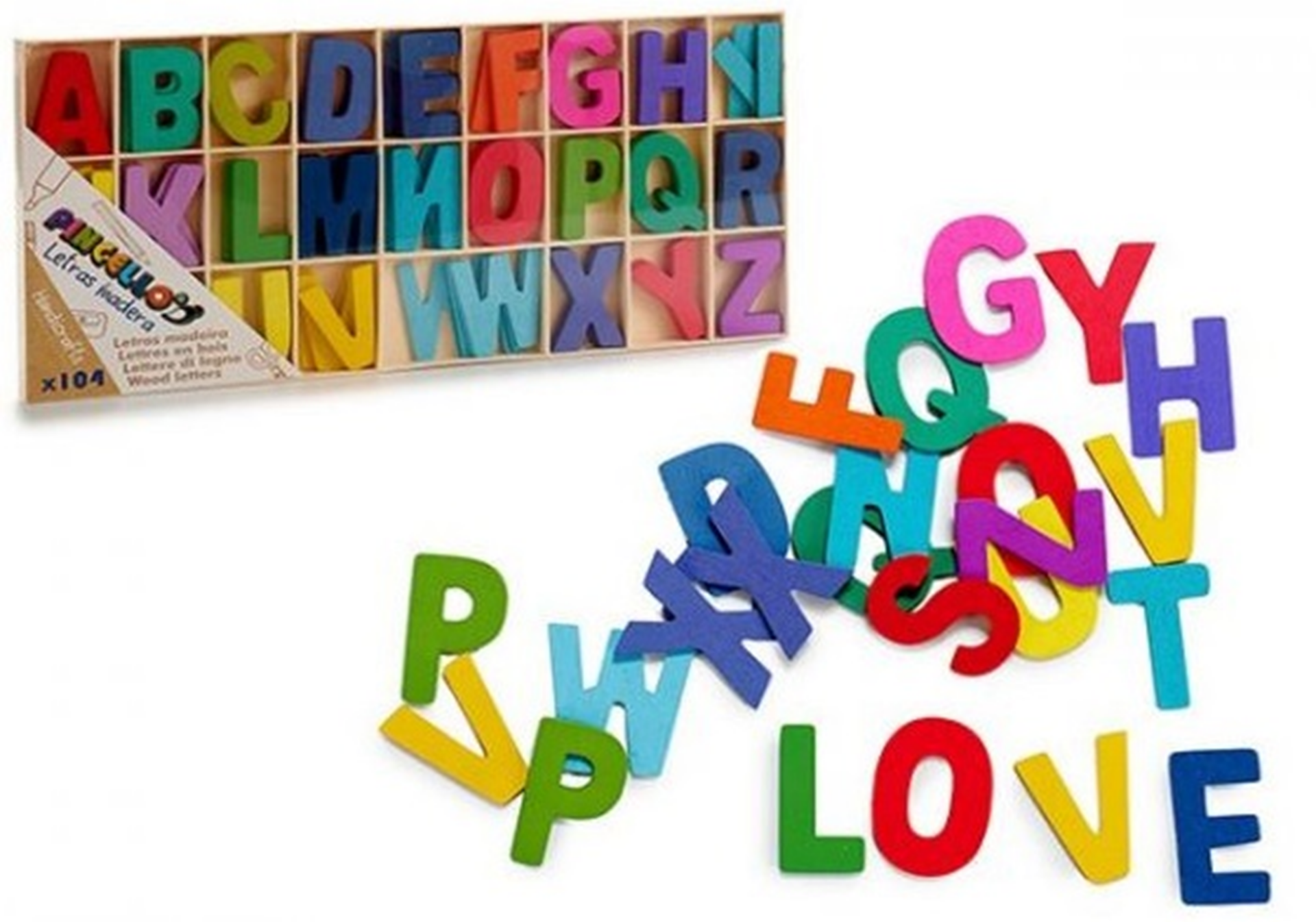 LETRAS MADERA COLORES SET 104pz