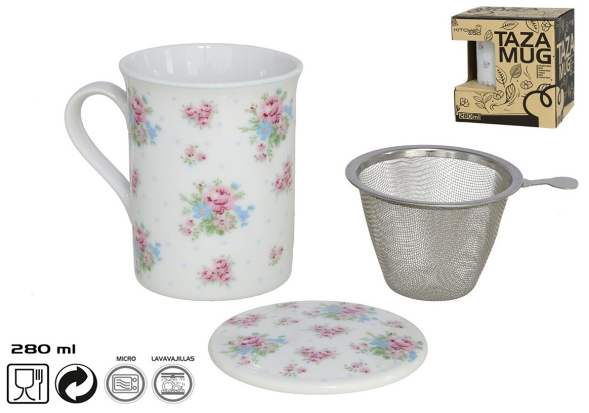 TAZA CERAMICA INFUSIONADOR+TAPA 280ml