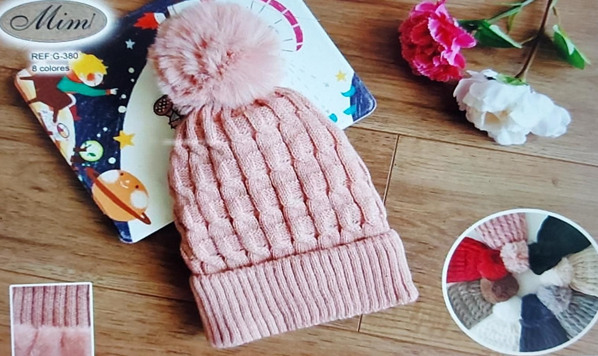 GORRO LANA SRA. RAYAS POMPON