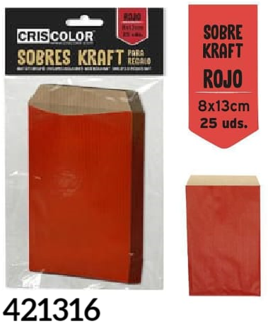 SOBRES KRAFT REGALO ROJO 8x13cm 25ud