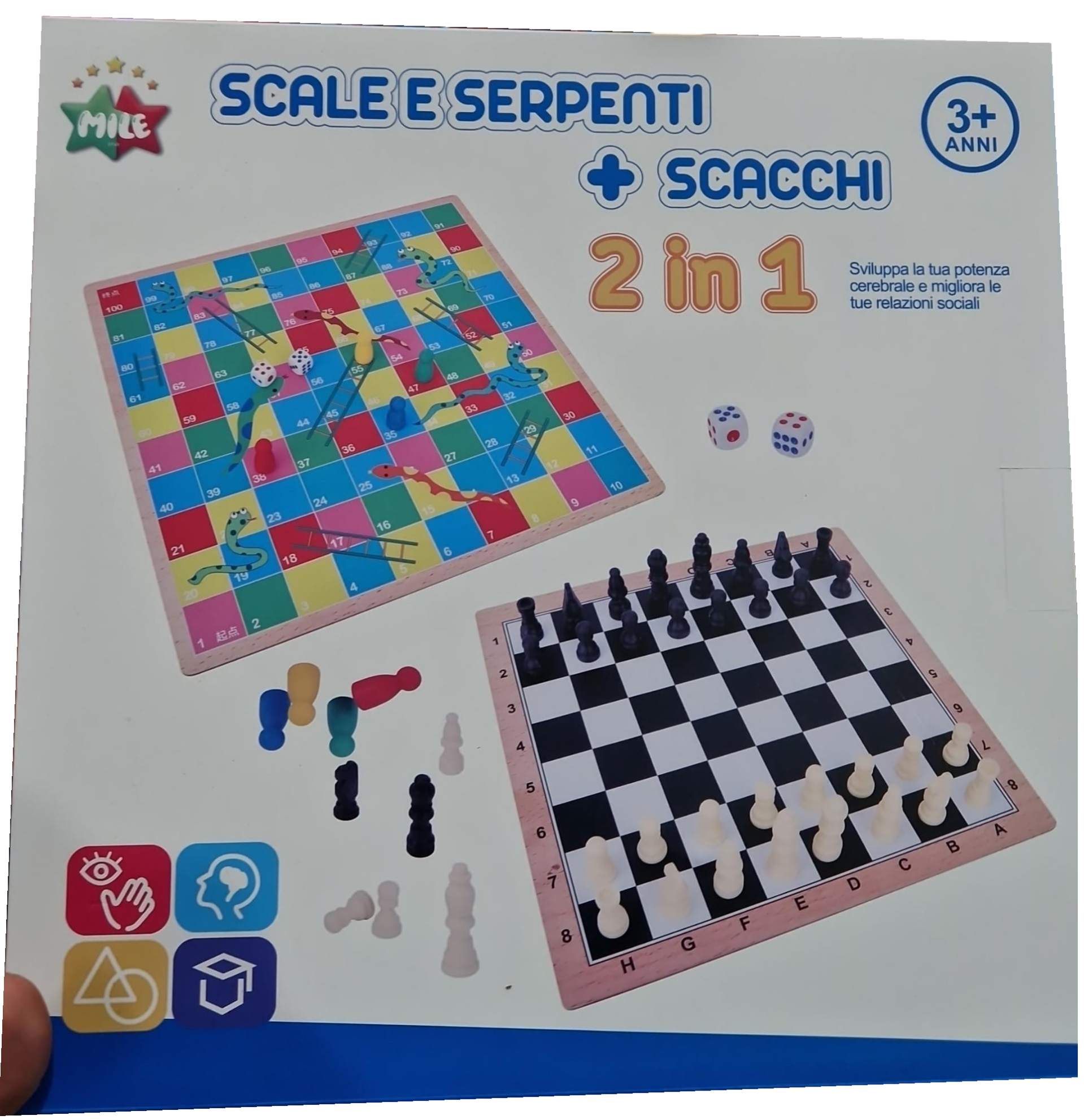TABLERO AJEDREZ+ESCALERA MADERA CAJA