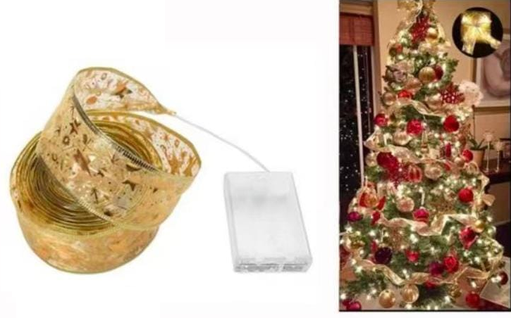 CINTA NAVIDAD DORADA CON LUZ PILAS 5cm x 2m