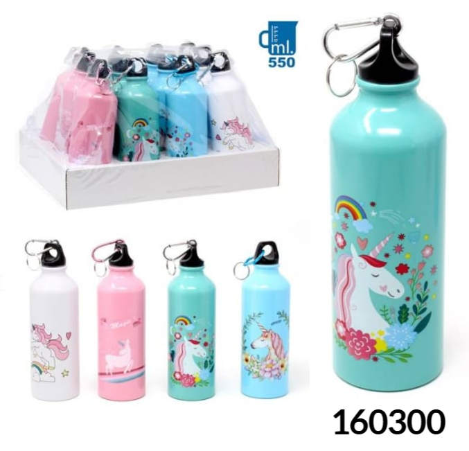 BOTELLA ALUMINIO UNICORNIO MOSQUETON 550ml